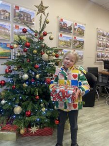 After almost a month of receiving outstanding entries from children across Surrey and Hampshire, we’re delighted to announce that Matylda, aged five-and-a-half, has been crowned winner of our 2025 Christmas Card design competition. Matylda collected the winner’s prize, a Nintendo Switch 2 with Mario Kart World, on Thursday 11 December. Her